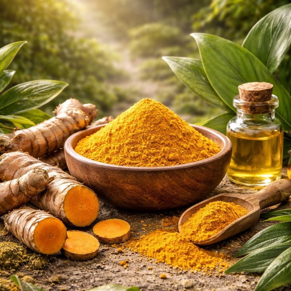 Kurkuma, znana ze swoich właściwości przeciwzapalnych i antyoksydacyjnych, pomaga wyciszyć podrażnienia oraz wspiera wyrównanie kolorytu skóry. Regularne stosowanie kremu sprzyja harmonizacji odcienia cery, redukcji zaczerwienień oraz poprawie ogólnej kondycji skóry.